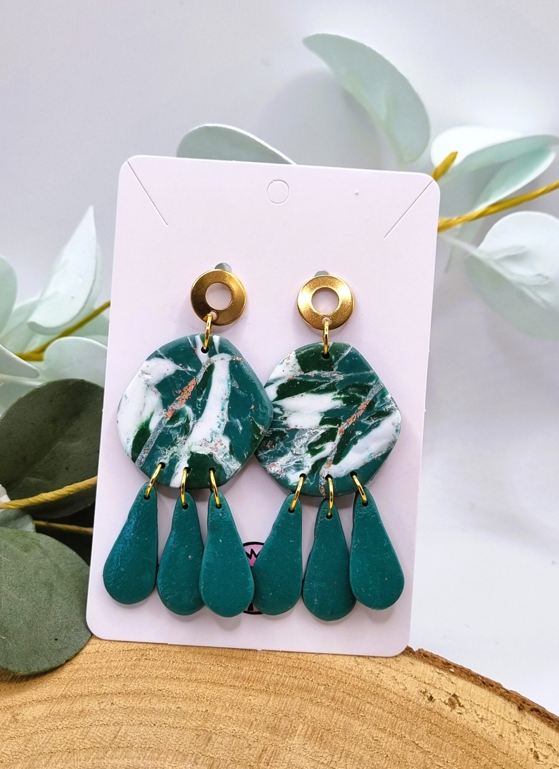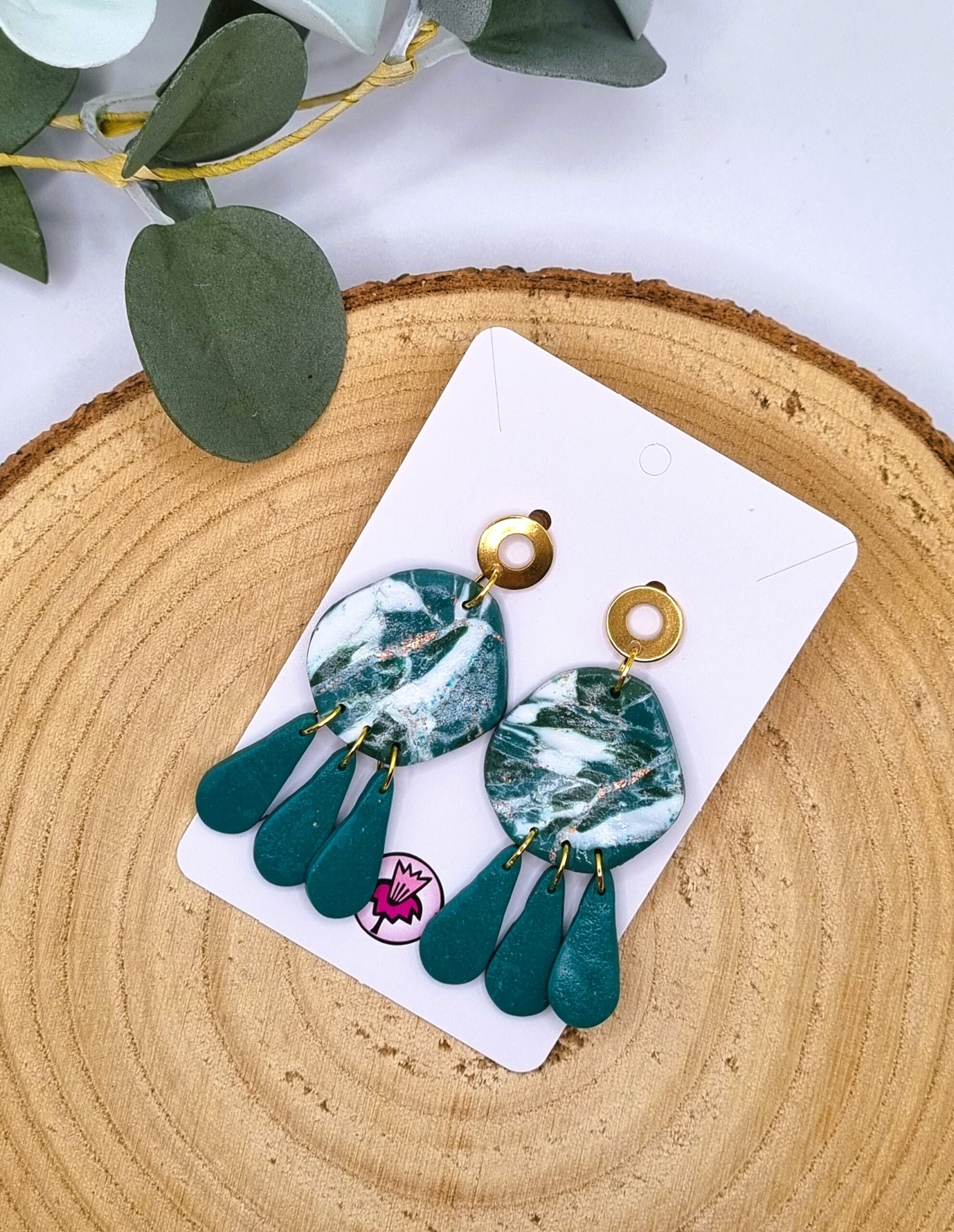 Unikatni, ročno izdelani uhani iz polimerne mase. Malce bolj drzna oblika in efekt marmorja za vse, ki želijo izstopati.