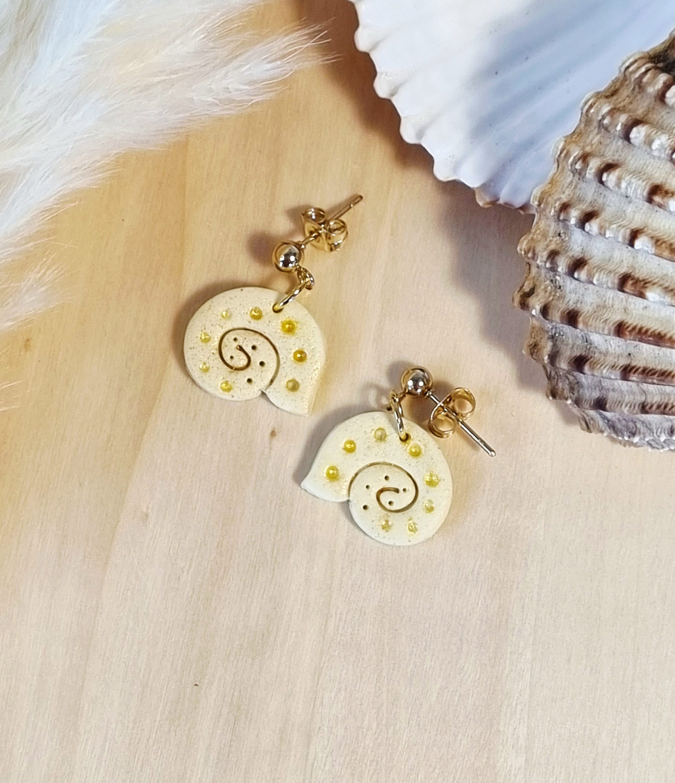 Uhani so narejeni iz polimerne mase, ki je po oblikovanju pečena v pečici. Vsi kovinski dodatki so iz nerjavečega jekla, zato ne dražijo ušes.