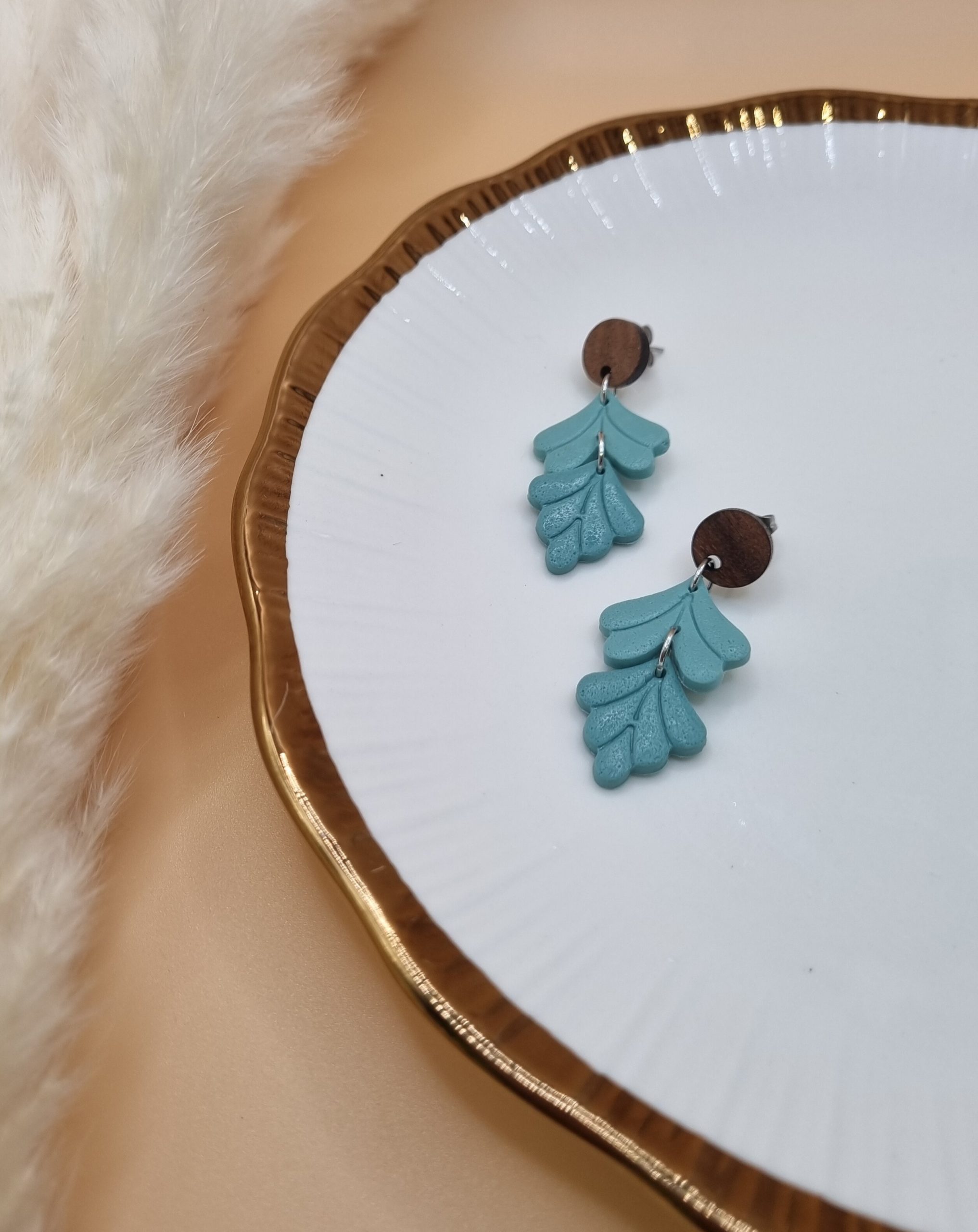 Viseči uhani z motivom lista, v priljubljenem boho stilu, bodo zagotovo razveselili vsako ljubiteljico narave. Uhani so lahki, preprosti in minimalistični. Lesen nastavek deluje toplo in poveze celotno obliko. Uhani so primerni za različne priložnosti ter na voljo v različnih barvnih odtenkih.
