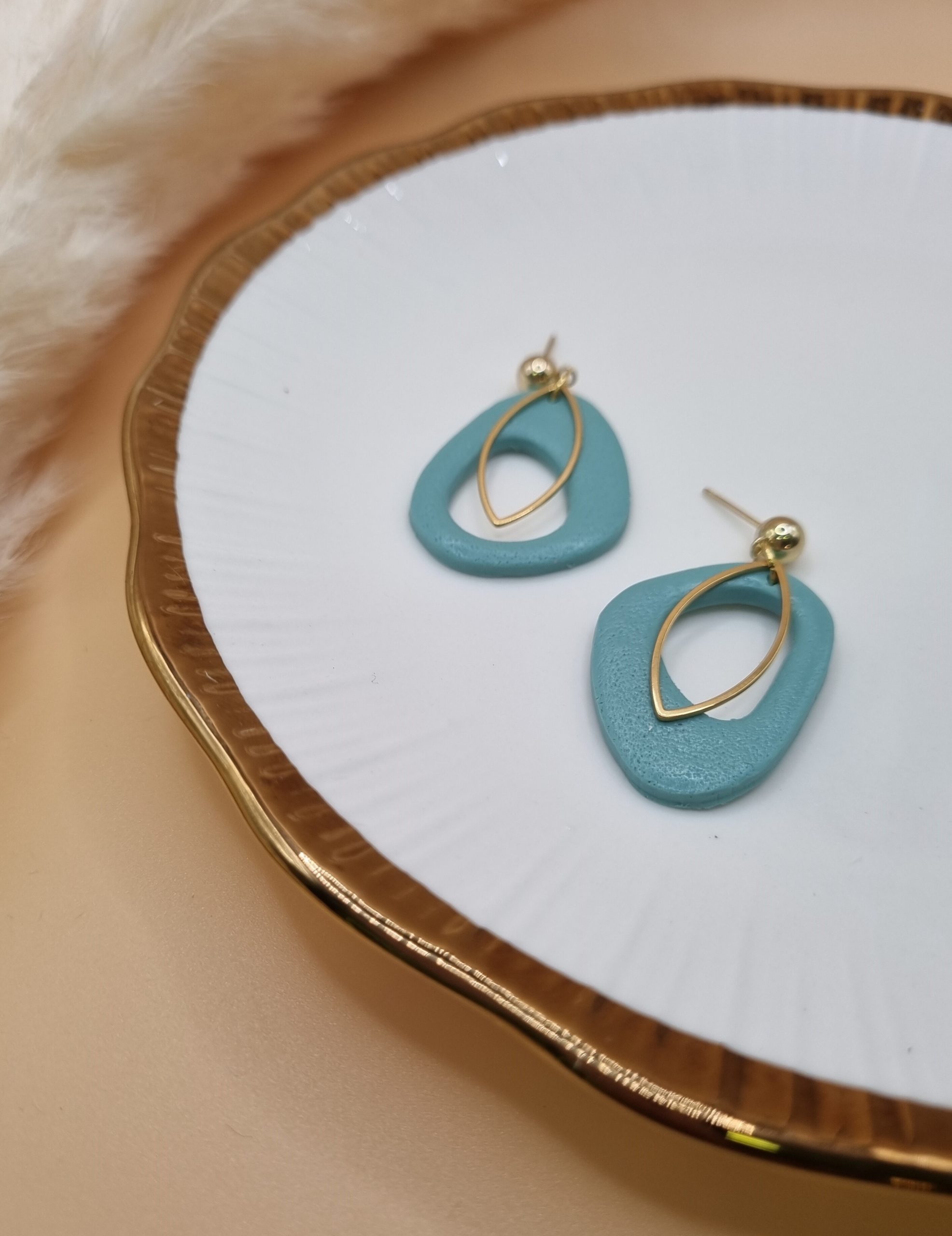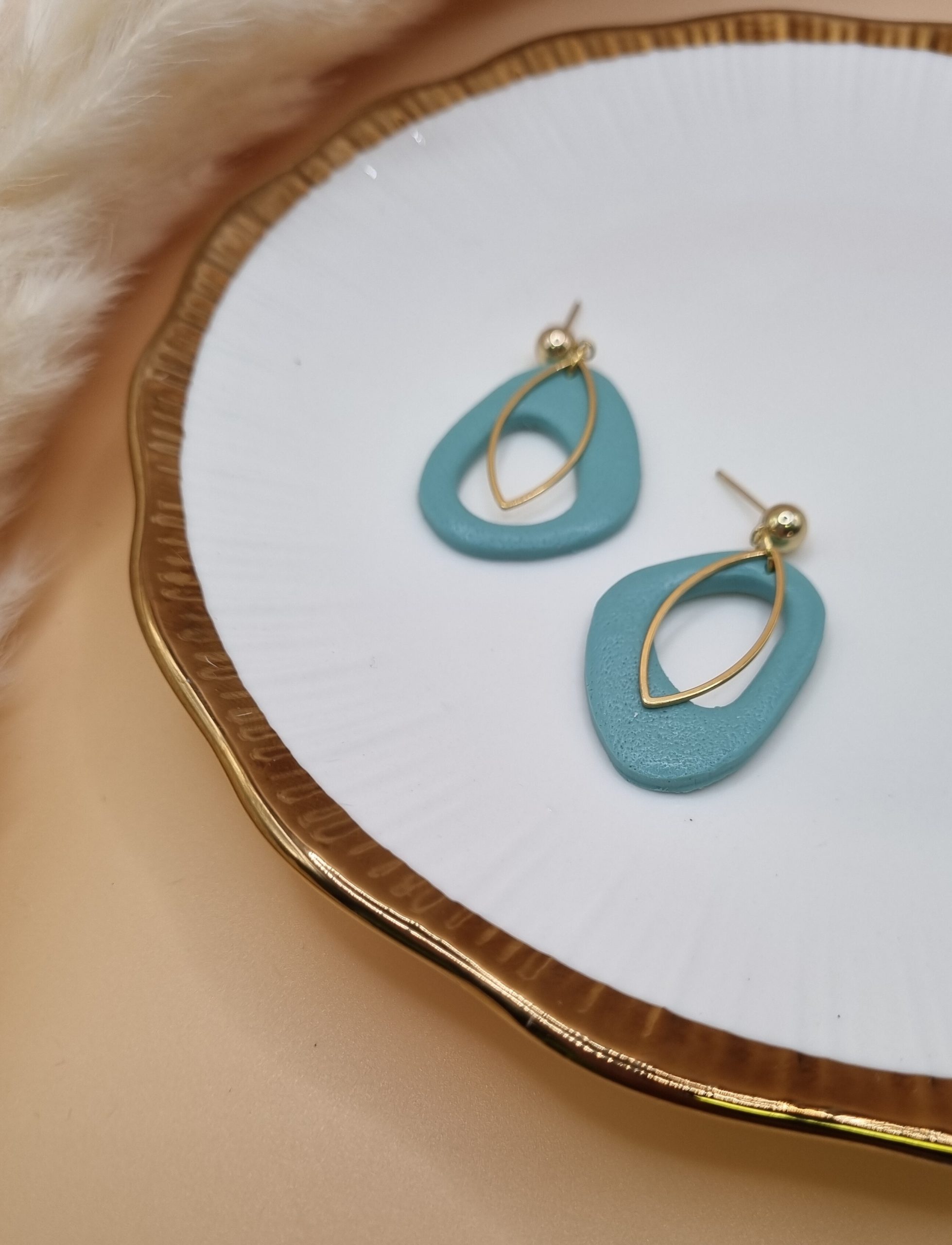 Viseči uhani v preprosti organski, ovalni obliki z zlatim detajlem, so drugačni, elegantni in minimalistični, ter primerni za različne priložnosti.
