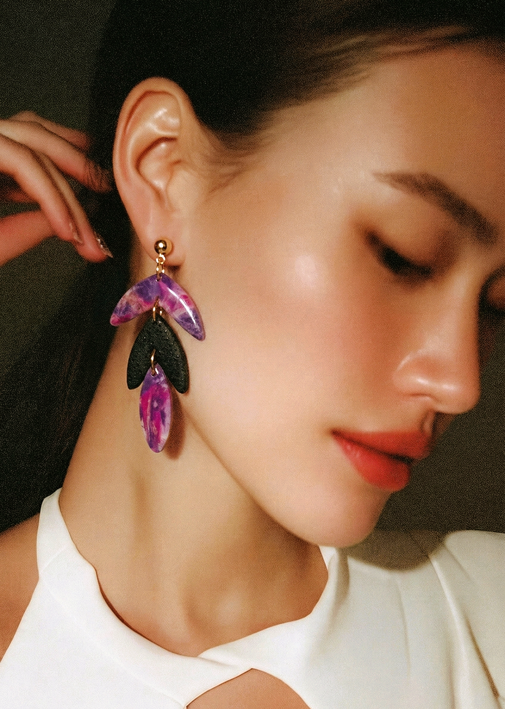 Uhani so natančno in kvalitetno izdelani, brušeni in prekriti z epoksi smolo. Ta par uhanov je za vse ljubiteljice elegance in vijolične barve. S temi uhani boš zagotovo pritegnila pozornost.