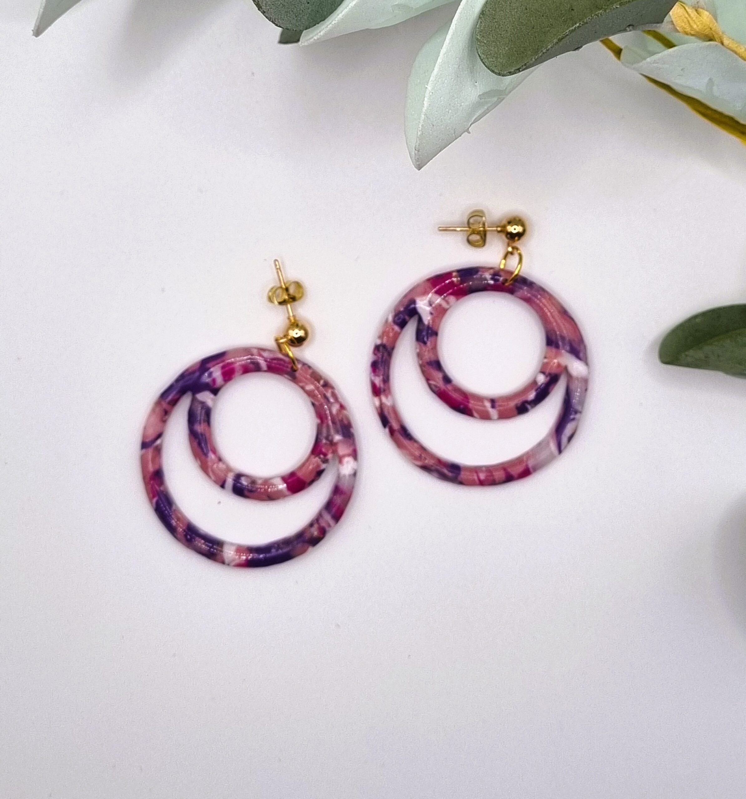 Uhani so natančno in kvalitetno izdelani, brušeni in prekriti z epoksi smolo. Ta par uhanov je za vse ljubiteljice minimalizma, elegance in vijolične barve. S temi uhani boš zagotovo pritegnila pozornost.