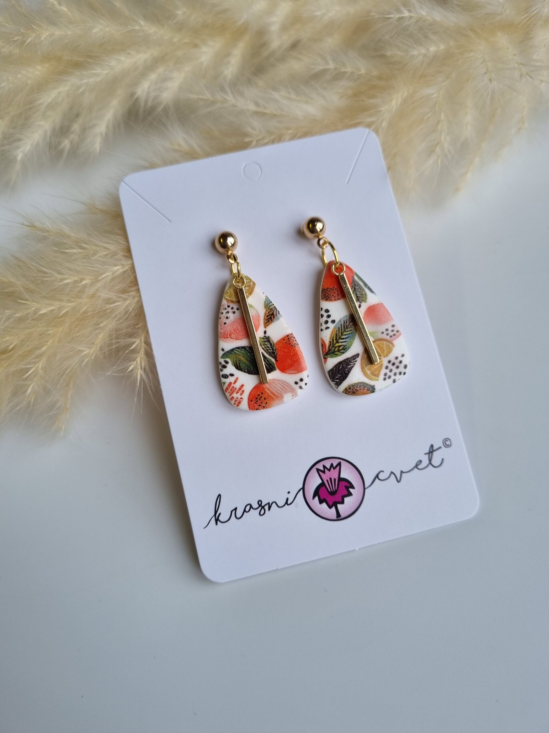 Uhani so natančno in kvalitetno izdelani, brušeni in polakirani z lakom. Ta par uhanov je za vse ljubiteljice minimalizma in živahnih vzorcev.